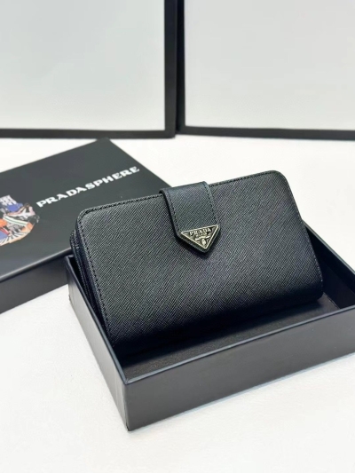[プラダ]財布(二つ折り財布) ネロ サフィアーノ レザー トライアングル ロゴ バイフォールド ウォレット レディースブラック [並行輸入品]