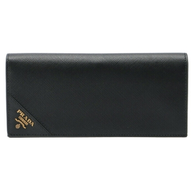 [プラダ] 財布(長財布) 1MH132 ネロ サフィアーノ レザー メタル レタリング ロゴ フラップ ウォレット カードケース付き レディース (ブラック) [並行輸入品]