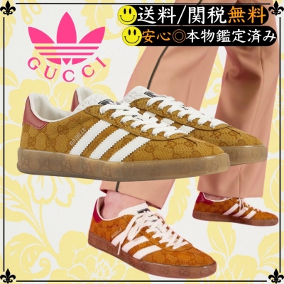 グッチ×アディダス ガゼル キャンバス×レザー スニーカー レディース ブラウン HQ7086 替えヒモ有