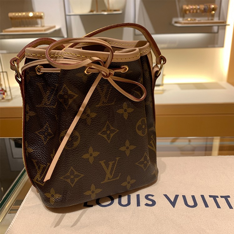 ルイ・ヴィトン ナノ ノエ ショルダーバッグ 斜め掛け モノグラム ヌメ革 レザー ブラウン 茶 ゴールド金具 M41346