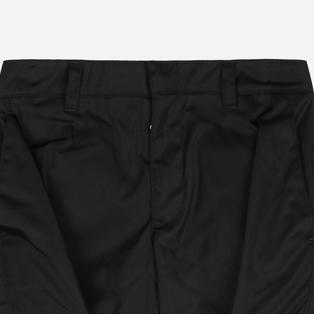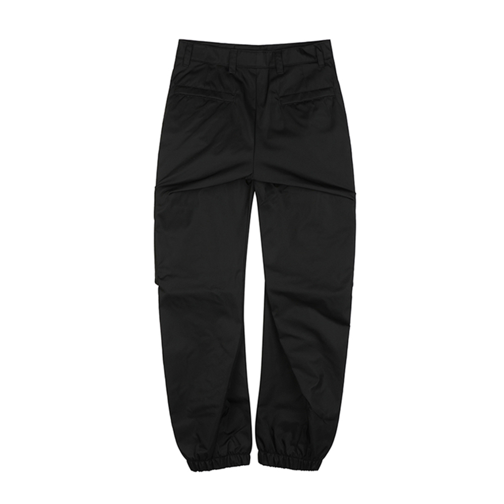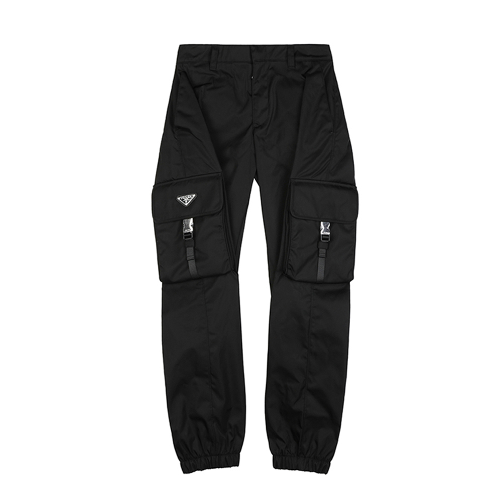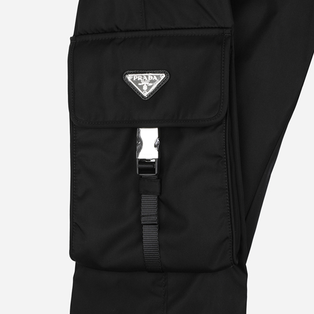 アイコニックなエナメルメタルのトライアングルロゴがあしらわれた、Re-Nylon パンツ。海から回収されたプラスチックごみや漁網、繊維くずを再利用、浄化して作られた再生ナイロン糸「エコニール(ECONYL)」を使用しています。