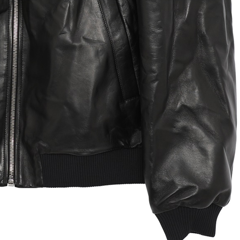 現代的なシルエットと洗練されたカットが魅力の、しっとりと柔らかなナッパレザー(羊革)のボンバージャケット。機能的でありながら洗練されたディテールをあしらい、襟と袖口をリブ編みしたファスナー開閉式のウェア。エナメルメタルのトライアングルロゴを飾り、カジュアルなジャケットにプラダらしいアクセントをプラスしました。