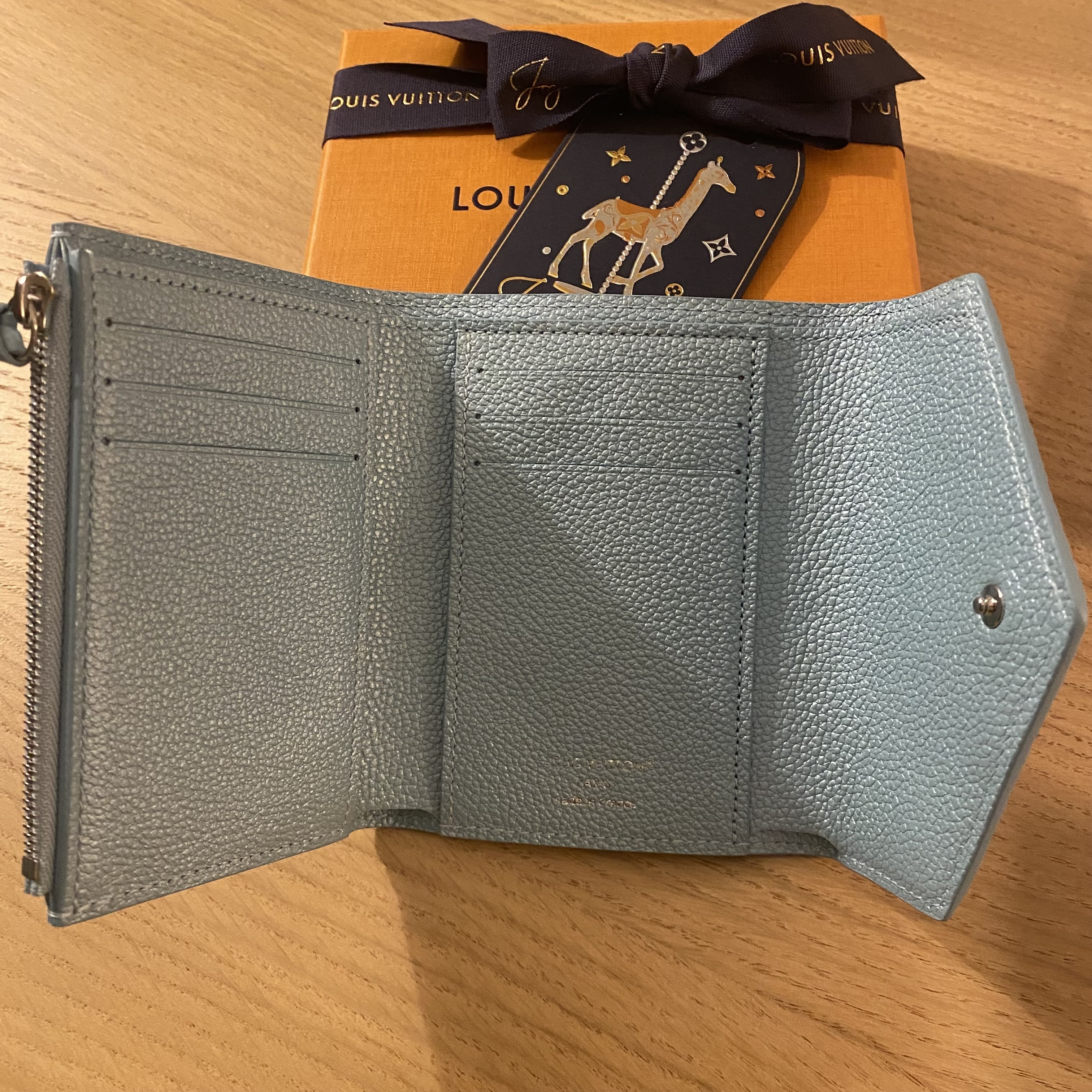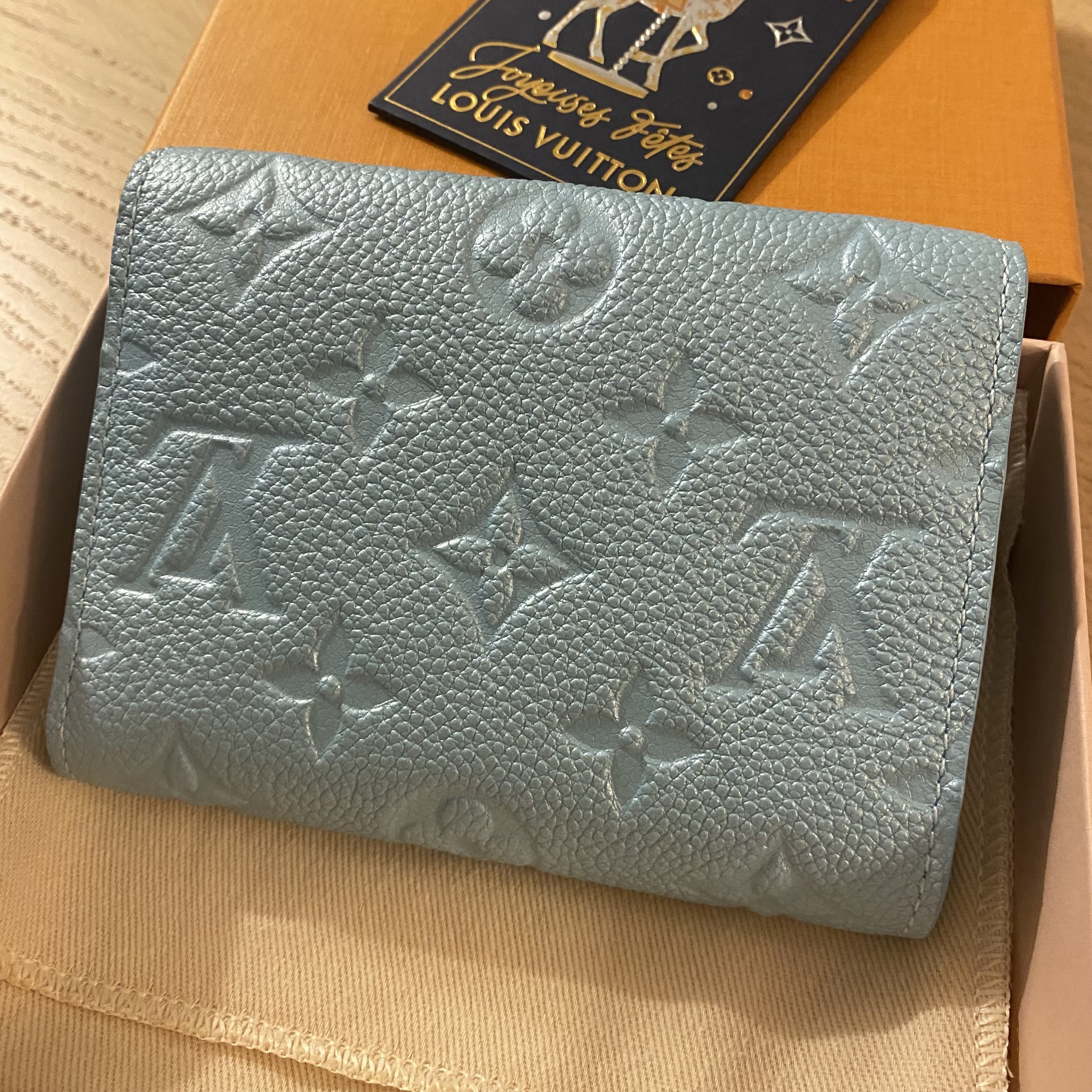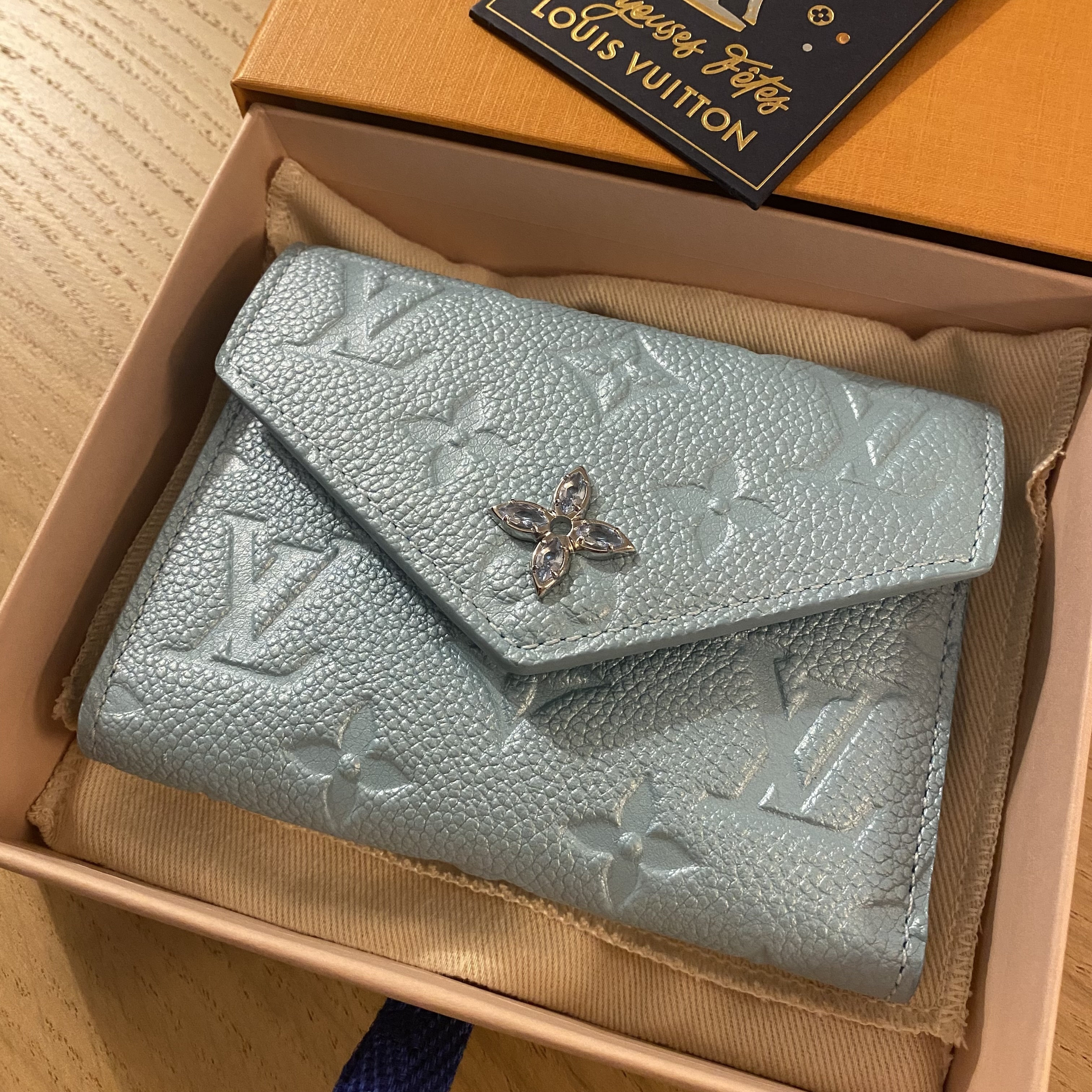 LVスキーコレクションから、このビクトリンウォレットは、きらびやかな仕上げのエレガントなアズールフロストシェードで際立っています。モノグラム・エンプラインテレザー製で、輝くクリスタルで強化されたモノグラムフラワースナップボタンがポイント。
