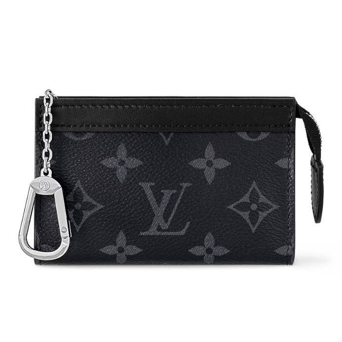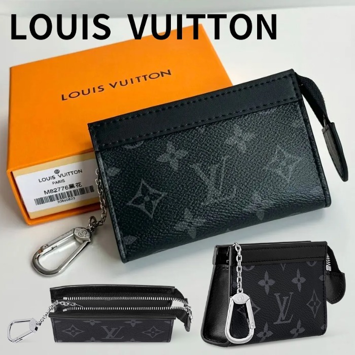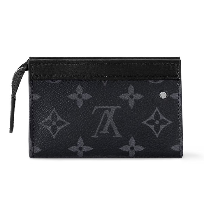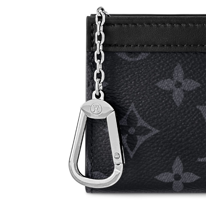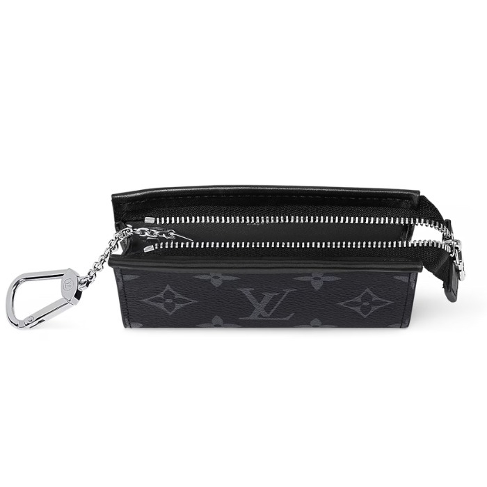 モノグラム・エクリプス キャンバスにカウハイドレザーのトリミングを施して仕立てた「ポシェット・クレ ヴォワヤージュ」。