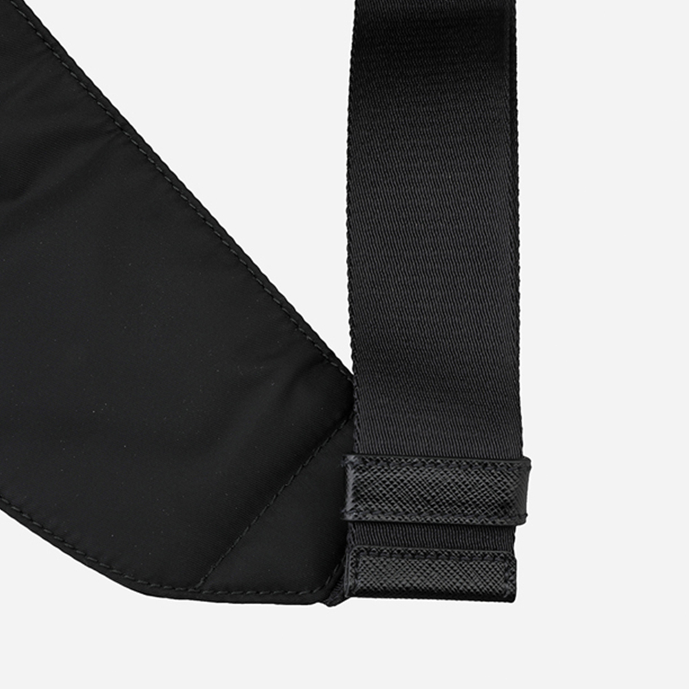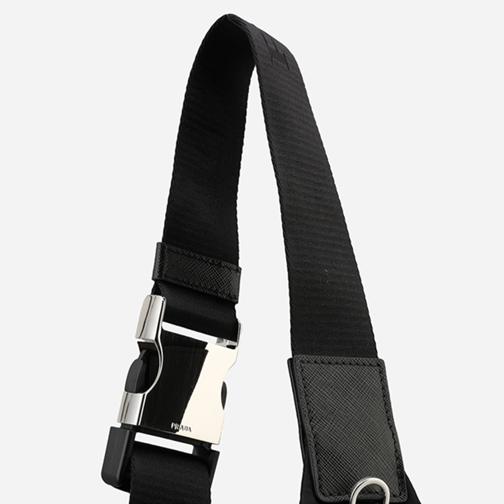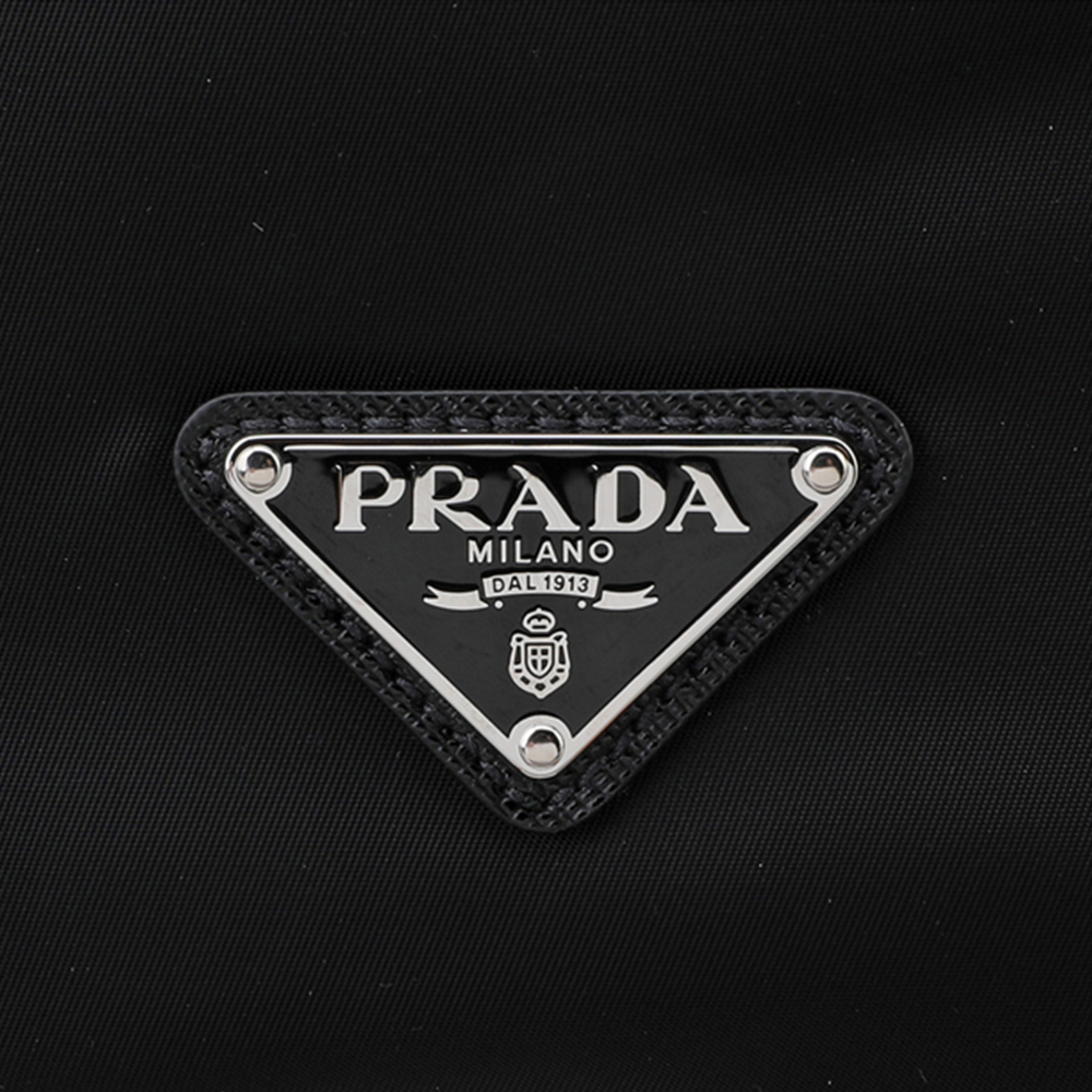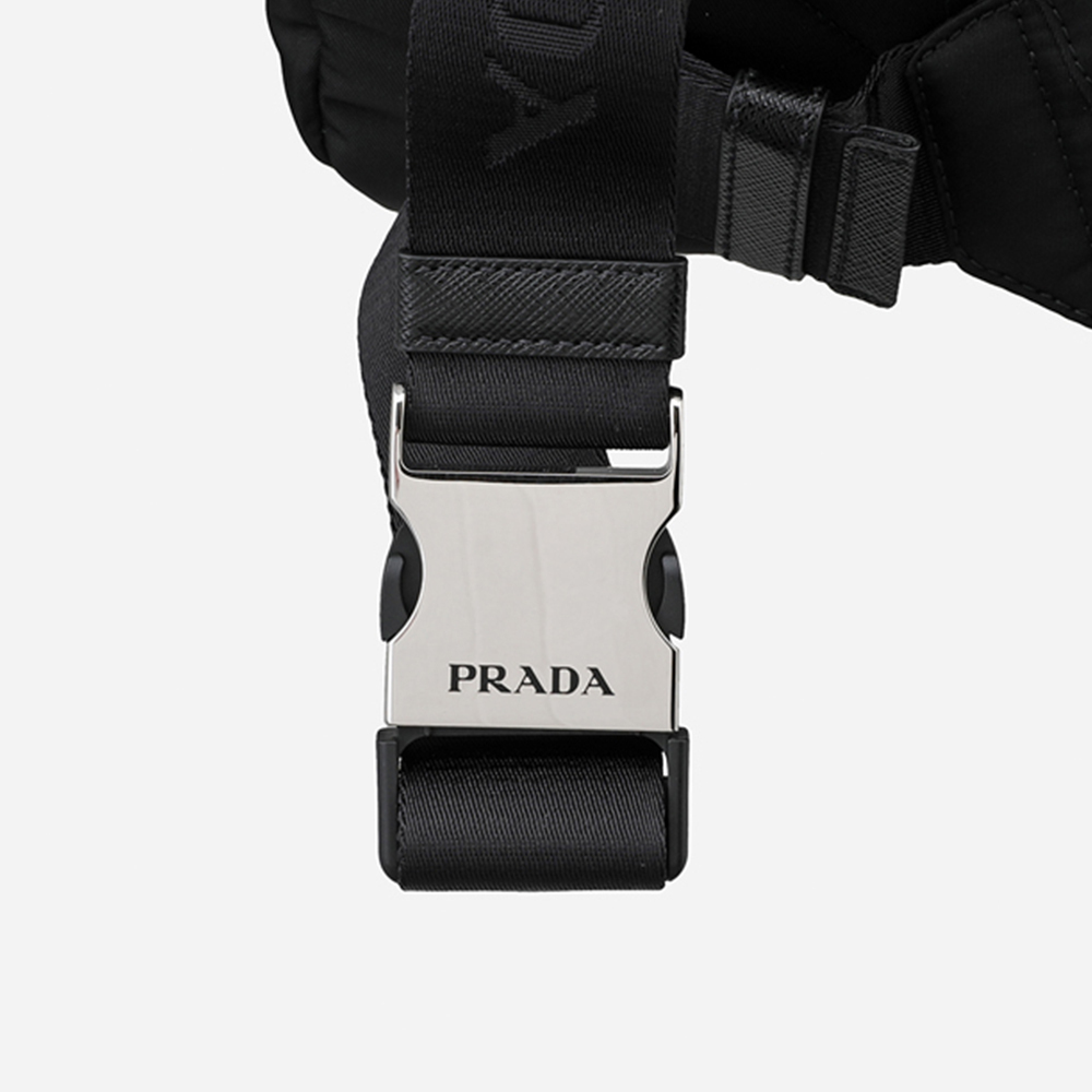 2021年秋冬コレクションの新作メンズバッグ。洗練されたシンプルなラインが魅力。バックパックとしてもショルダーバッグとしても使えるデザイン。調節可能なナイロンショルダーストラップとサイドリリースバックルを備え、アイコニックなエナメルメタルのトライアングルロゴがあしらわれています。海から回収されたリサイクルプラスチック素材で作られた革新的な再生糸であるRe-Nylonを使用。
