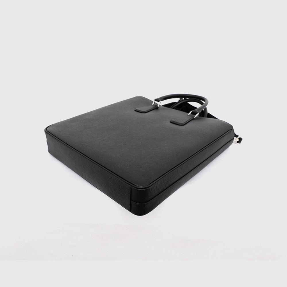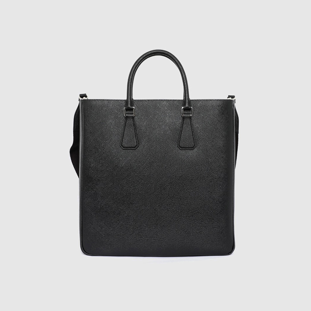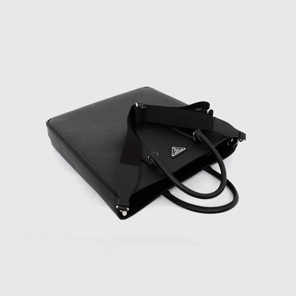 プラダのコレクションを象徴する素材「サフィアーノ」レザー(牛革)の個性的なクロスハッチ加工には、ブランドが誇るクラフツマンシップのノウハウが独特な質感となって強く表れています。素材にワックス仕上げを施し、洗練されたミニマルなデザインのトートバッグにエレガンスをプラスしました。調節・取り外し可能な機能的なショルダーストラップを備えた、さまざまな方法で携帯できるシンプルな幾何学形のスタイル。プラダを象徴するエナメルメタルのトライアングルロゴがあしらわれています。