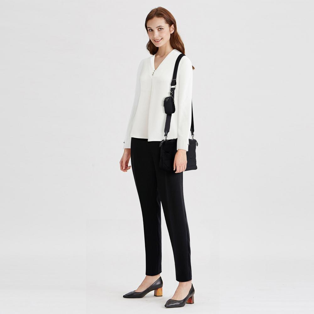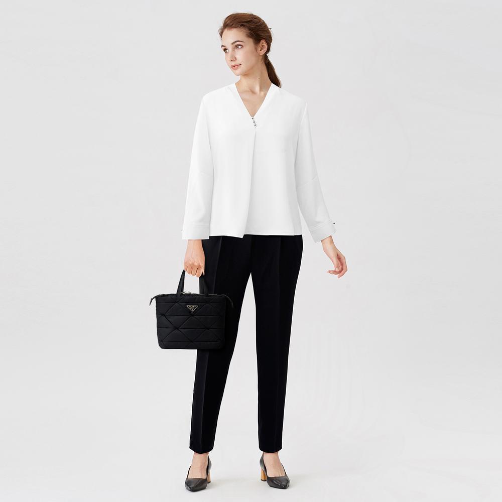 ・ナイロンにあしらわれたキルティングモチーフがエレガントで柔らかな印象を醸し出しながらも、コントラストの効いたアイコニックなトライアングルロゴとナッパレザー(羊革)のハンドルがスタイリッシュな表情を引き立てる多機能なナイロンパデッドトートバッグ。ショルダーストラップに取り付けられる、取り外し可能なナイロンポーチを備え、様々なシーンでカジュアルにお使いいただけるアイコニックなバッグです。