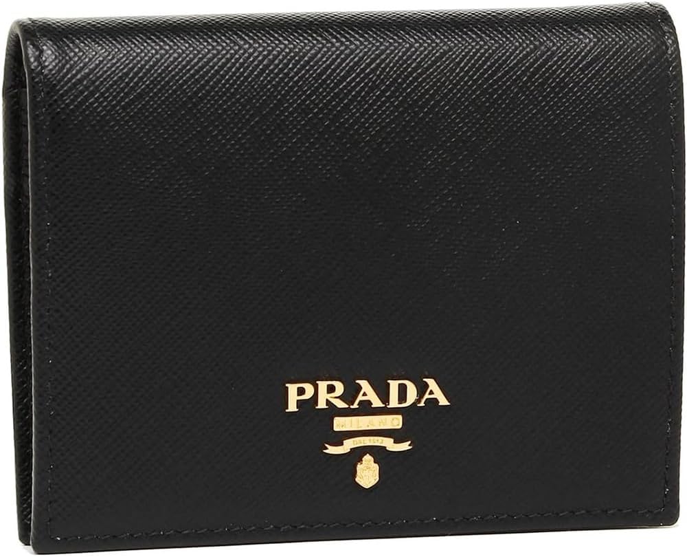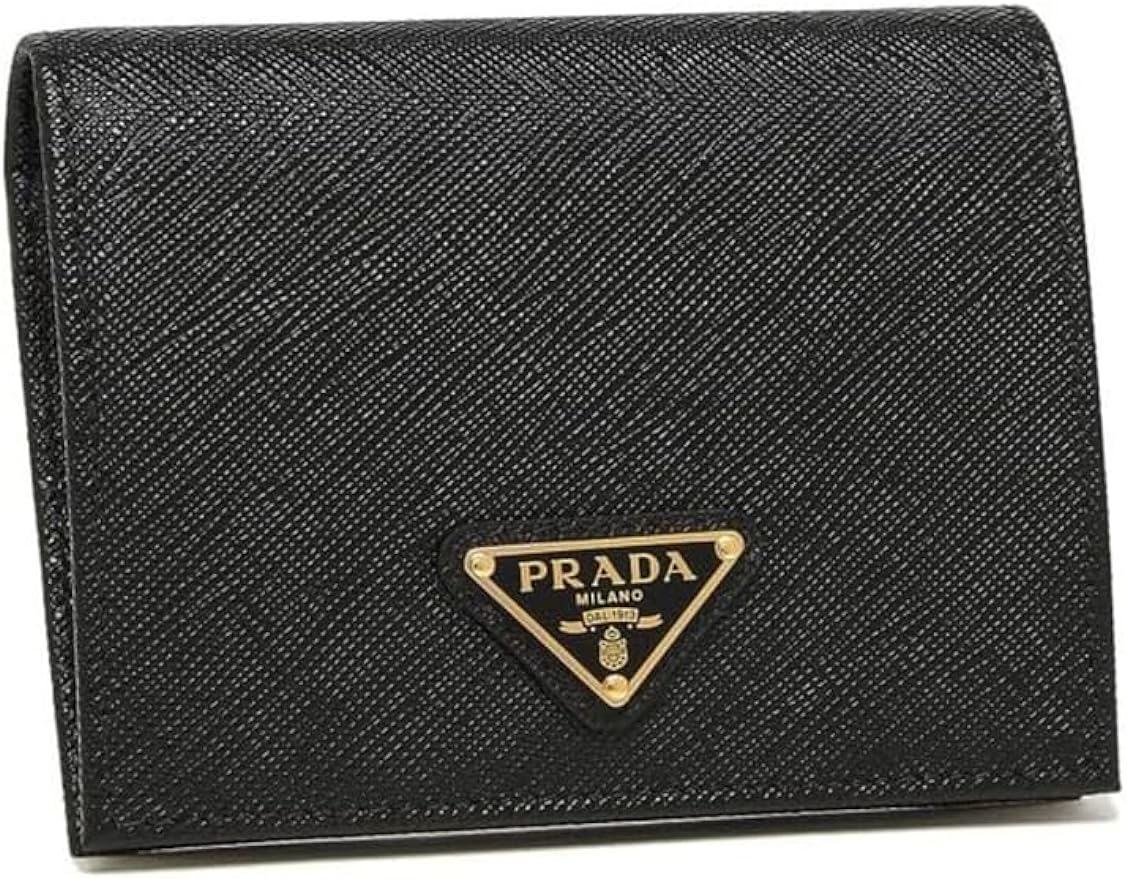 [プラダ] 財布(二つ折り財布) 1MV204 ネロ サフィアーノ レザー メタル レタリング ロゴ バイフォールド コンパクト ウォレット レディース DYLLGL [並行輸入品] (ブラック/ゴールド)
