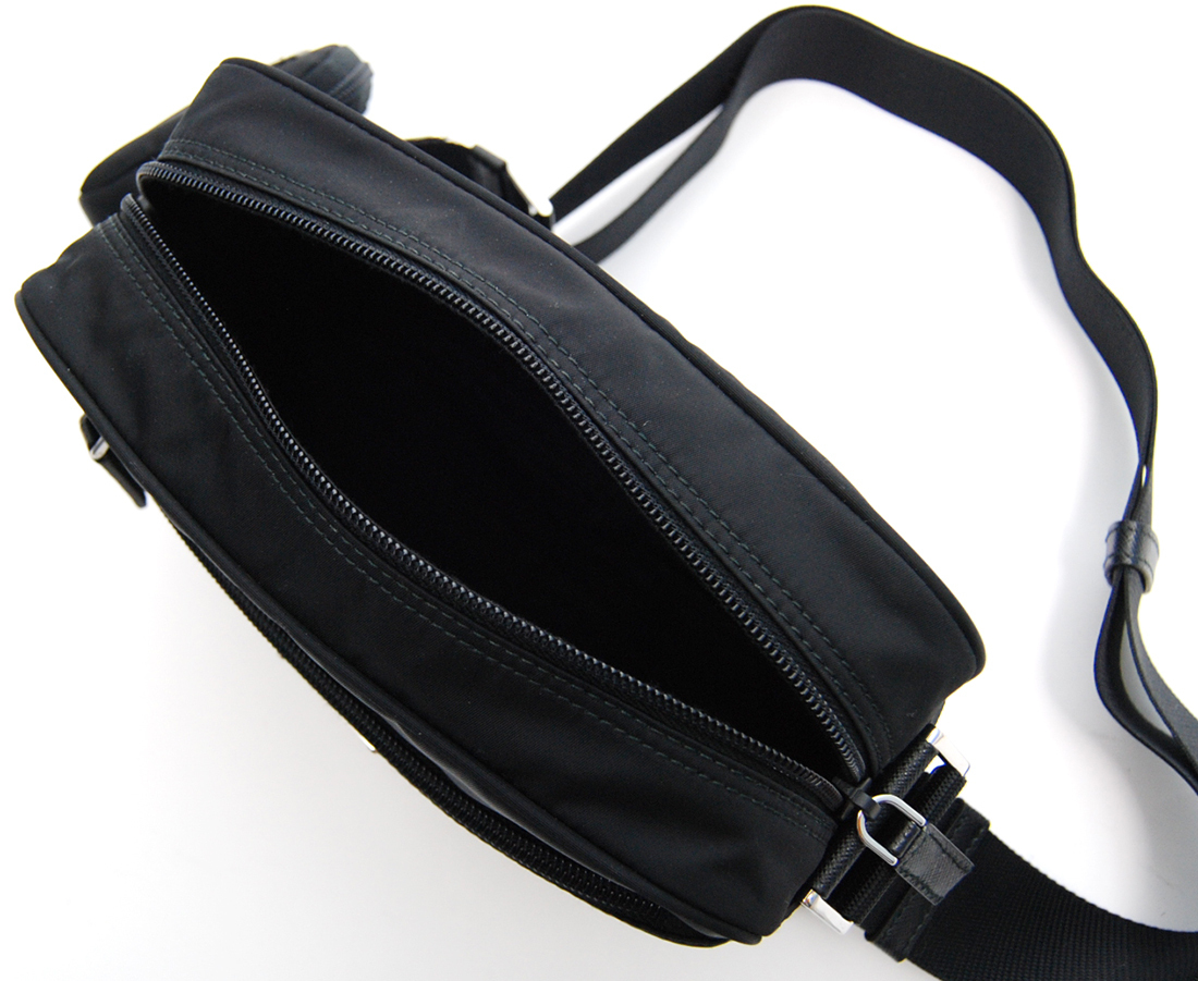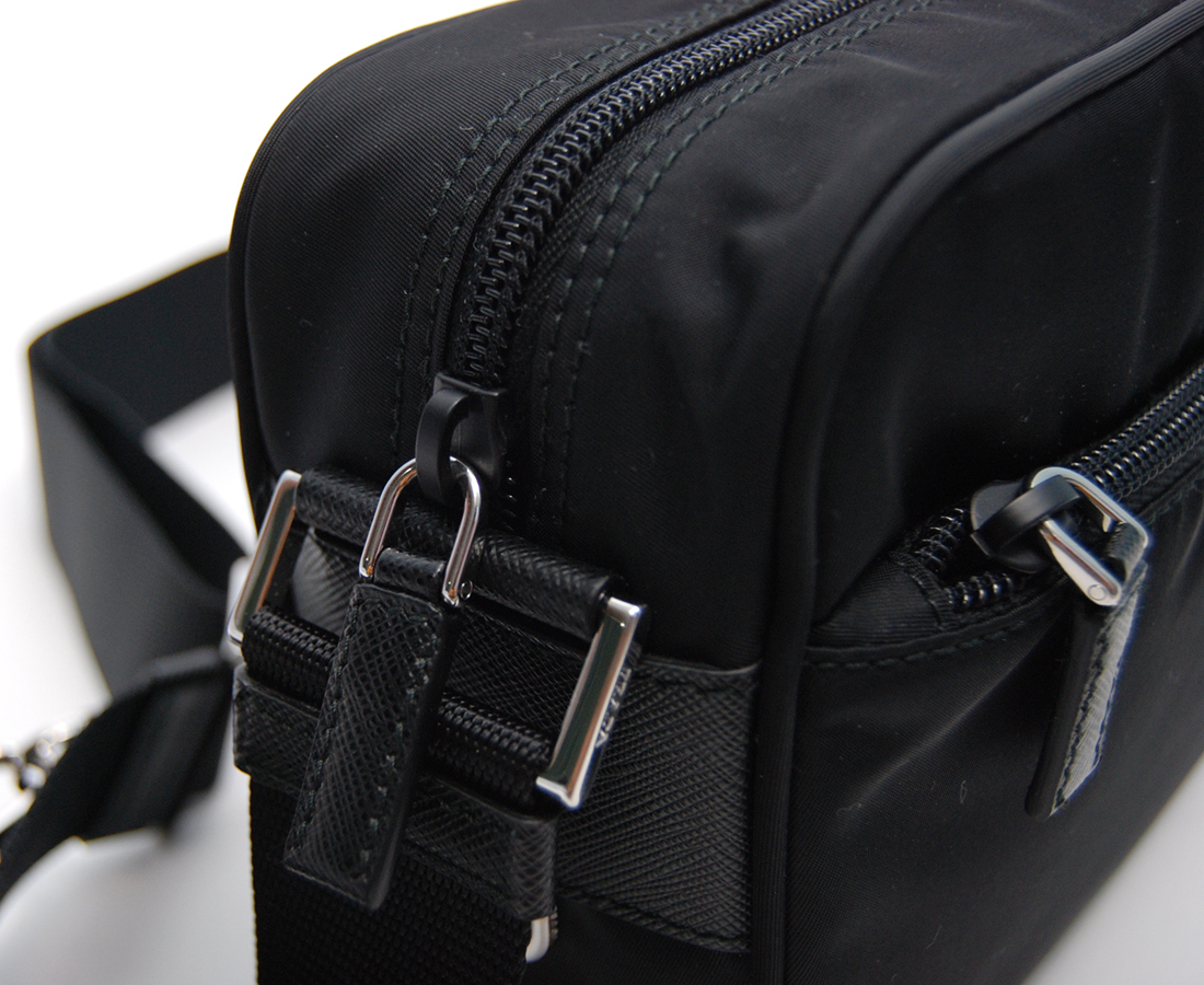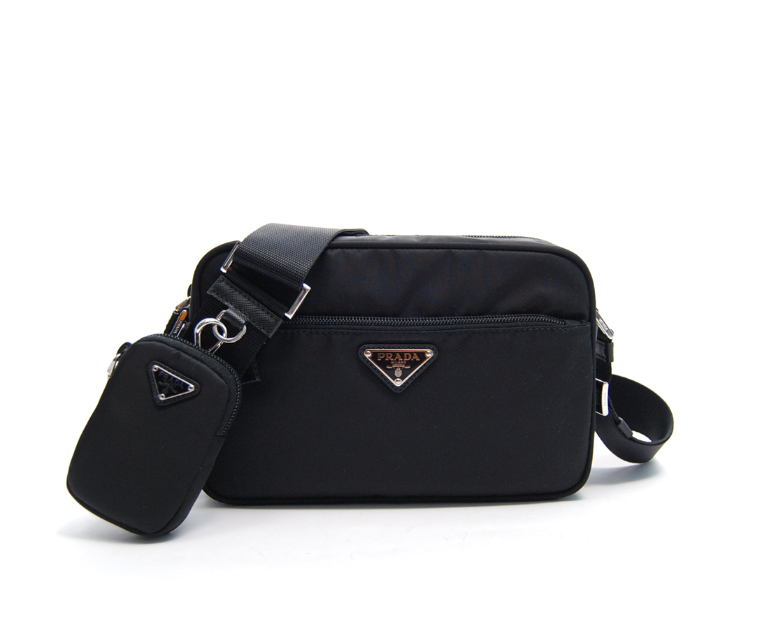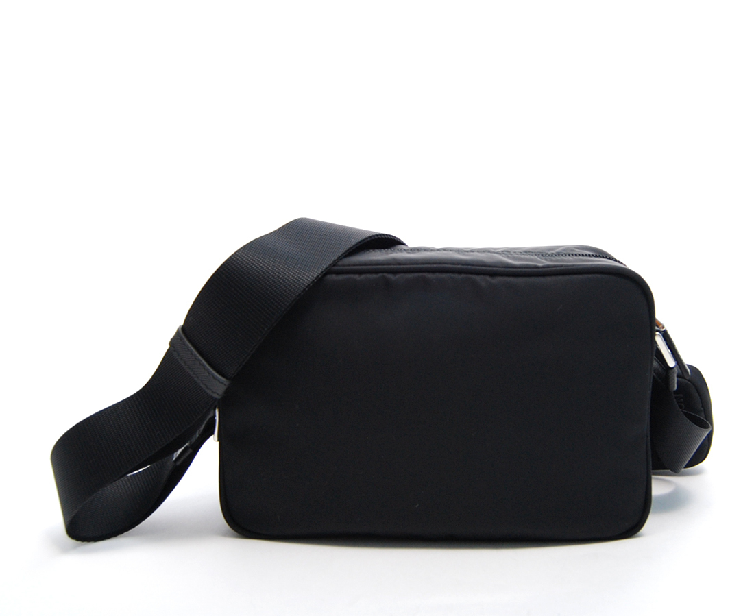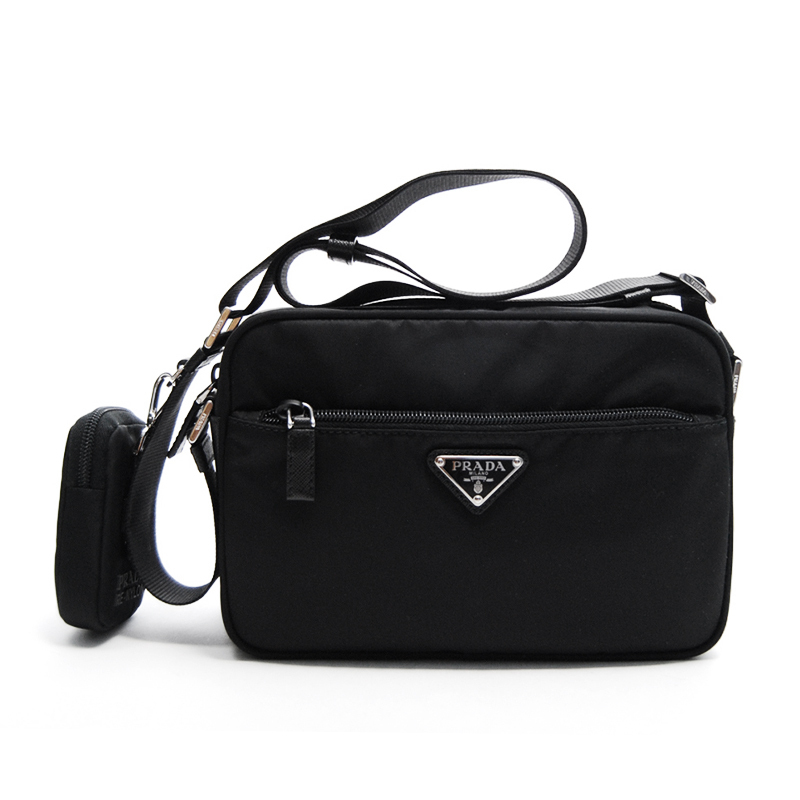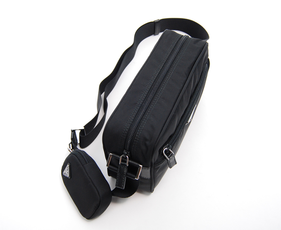 ・ナイロンのモダンな質感を引き立てるコンパクトなデザインとフロントのトライアングルロゴが特徴のナイロン ショルダーバッグ。