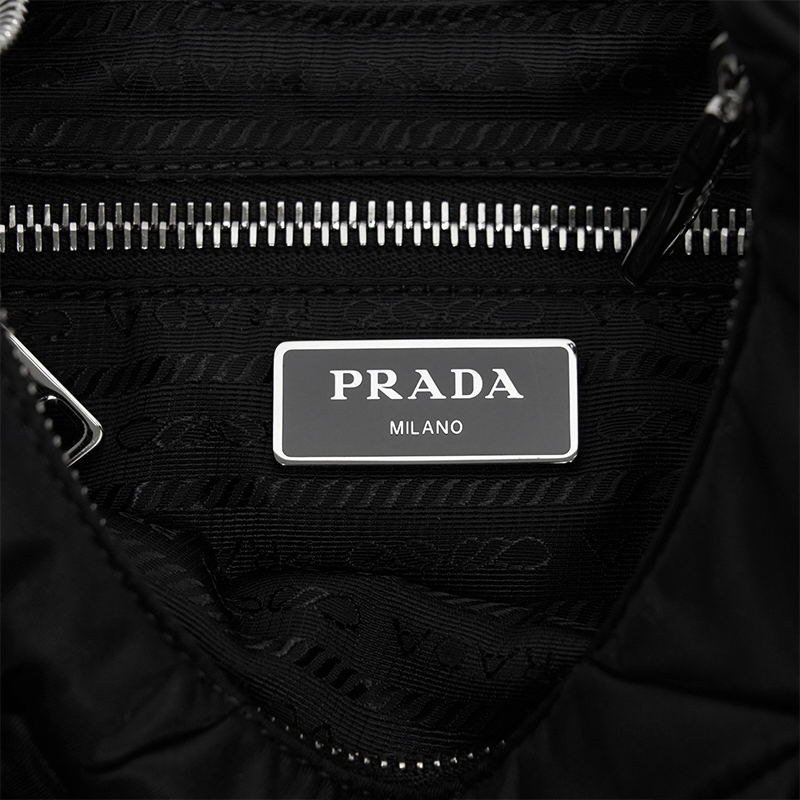 ・ファスナー付ポケットを備えたプラダロゴのナイロンライニング