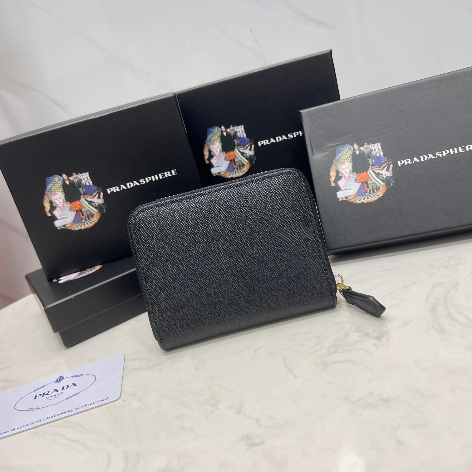 プラダ サフィアーノ ミニ財布 レディース サフィアーノメタルオロ 無地