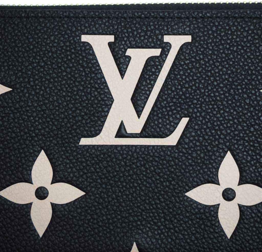 ルイヴィトン M80481 レザー 財布 バイカラー モノグラム・アンプラント ジッピー・ウォレット ブラック ベージュ ラウンドファスナー長財布
