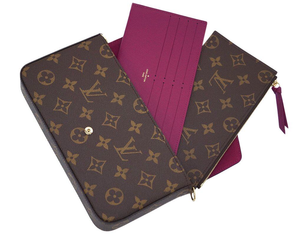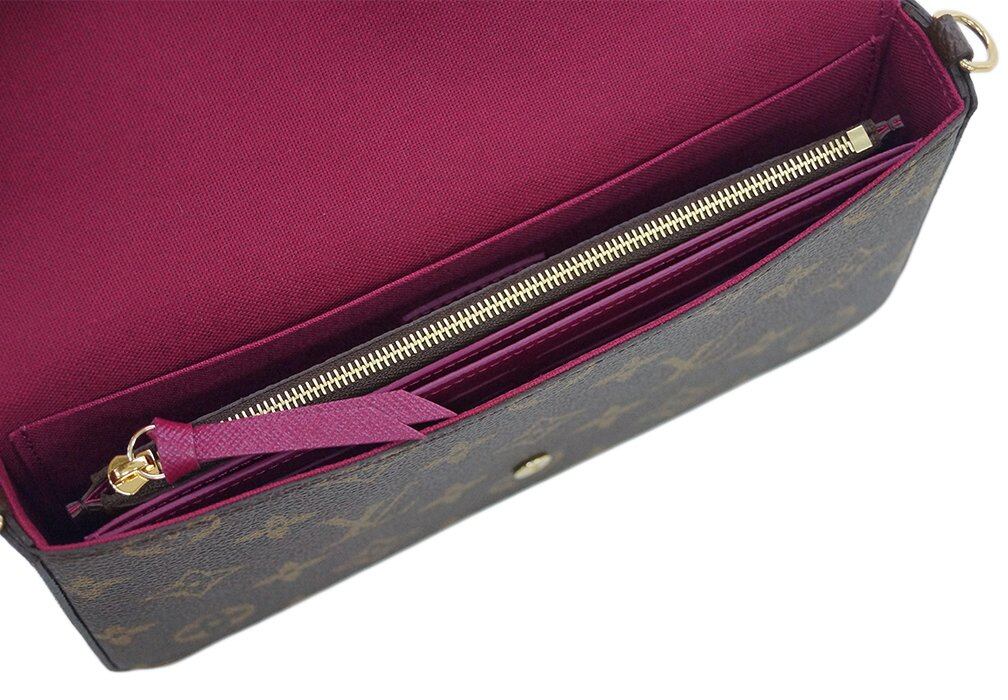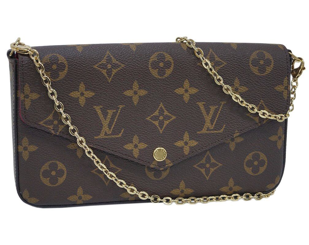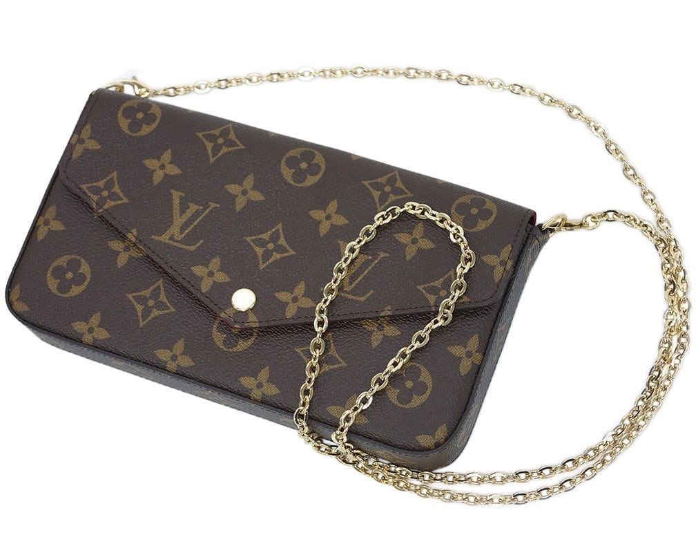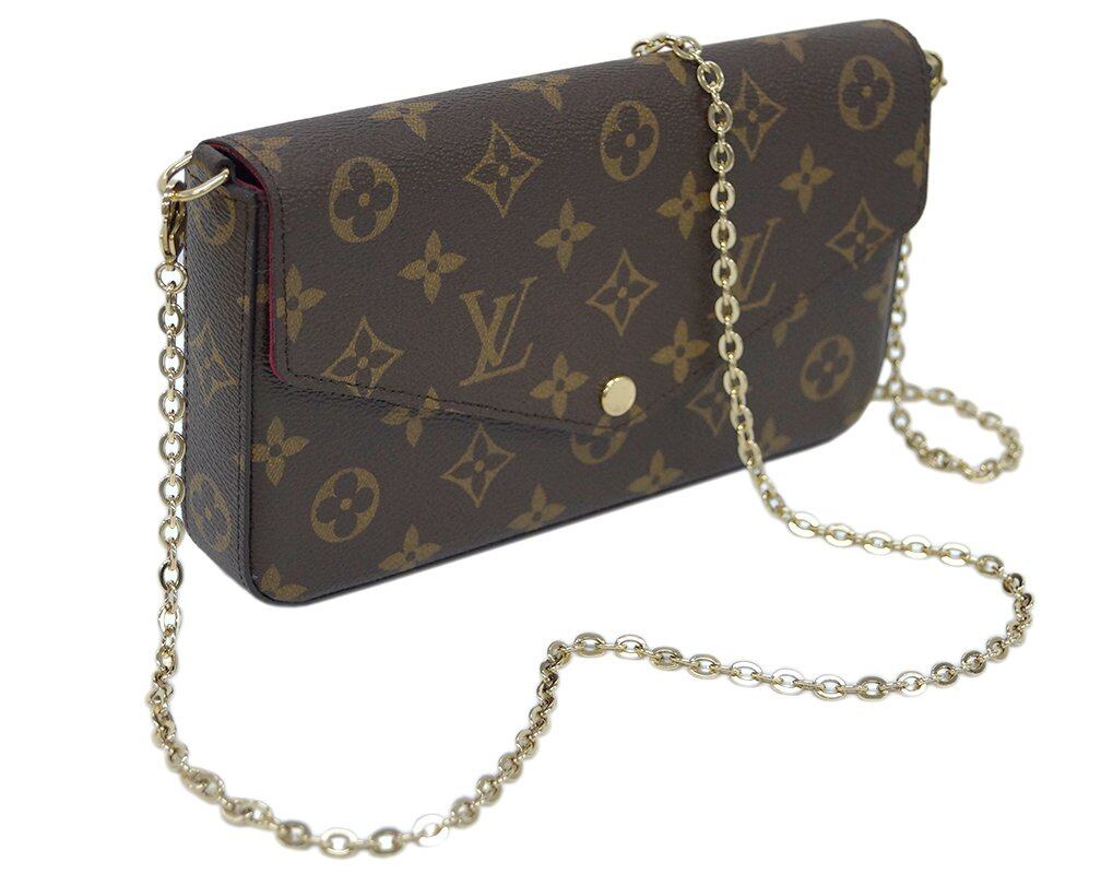 品番:M61276商品名:ルイ・ヴィトン モノグラム ポシェット・フェリシー商品詳細:スナップボタン開閉/内側パッチポケットx1/取り外し可能なケースx2/ファスナー付きポケットx1/カードポケットx8、パッチポケットx1/チェーンは取り外し可能、調節不可/ライニング: テキスタイル(フューシャ)/金具: ゴールドサイズ:ヨコ21cm(上部)xタテ12cmxマチ3cm/チェーン長さ: 約115cmファスナー付きポケット: ヨコ19cmxタテ10cm/フラットポケット: ヨコ19cmxタテ10cm素材:モノグラム・キャンバス付属品:保存袋
