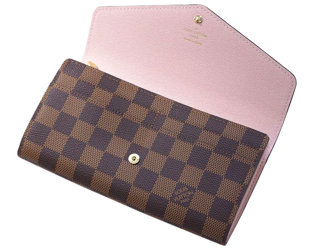 品番:N60114商品名:ルイ・ヴィトン ダミエ ポルトフォイユ・サラ ローズ・バレリーヌ商品詳細:スナップボタン開閉式、札入れx2、カードポケット正面x4、札入れの側面x12、ポケットx2、ファスナー付小銭入れ、背面ポケットx1、ライニング:カーフレザー(カラー:ベビーピンク)サイズ:ヨコ19cmxタテ10cmxマチ2.5cm素材:ダミエ・エベヌ キャンバス付属品:保存袋