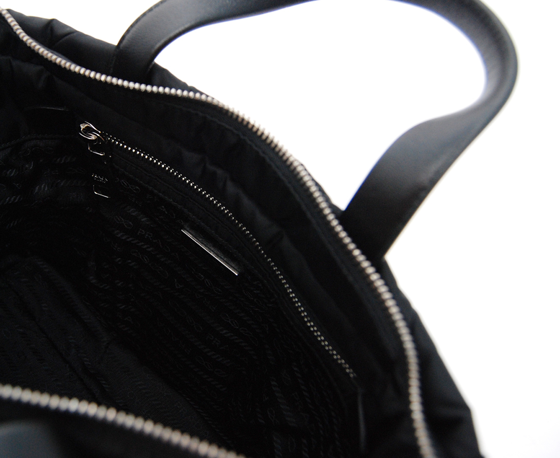 ・プラダロゴ入りナイロンライニングにポケット2個付(1個はファスナー付)