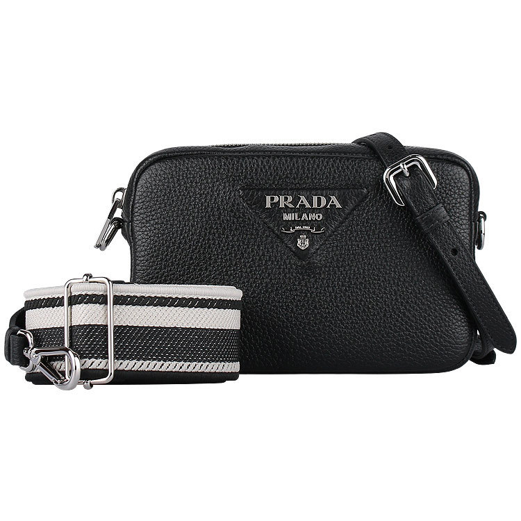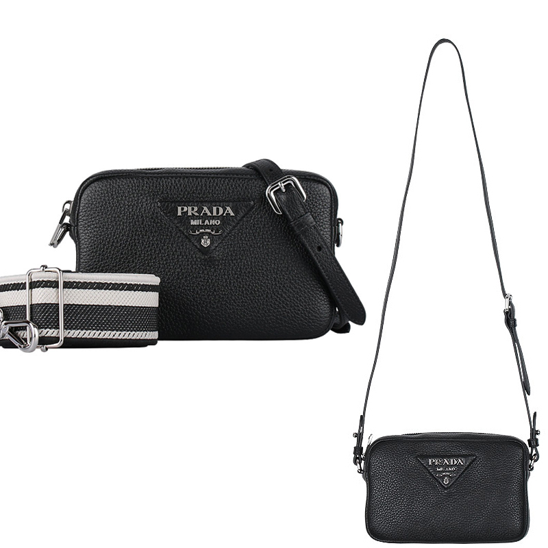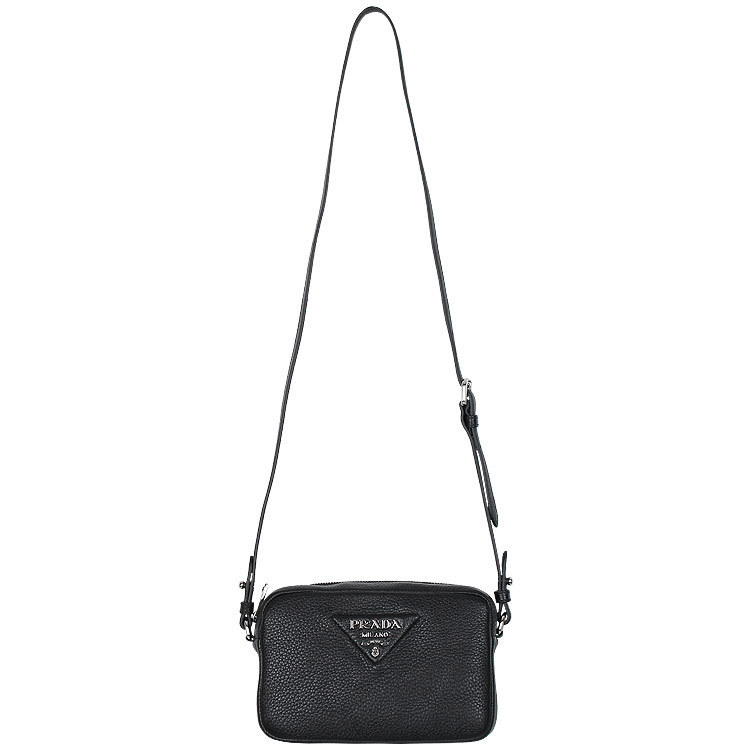 柔らかなシルエットの小型のレザー ショルダーバッグ。プラダを象徴するトライアングルの中に、光沢仕上げのメタルのレタリングロゴをエレガントにアレンジ。ロゴ刺繍入りショルダーストラップがモダンな個性を添える、汎用性の高いデザイン。