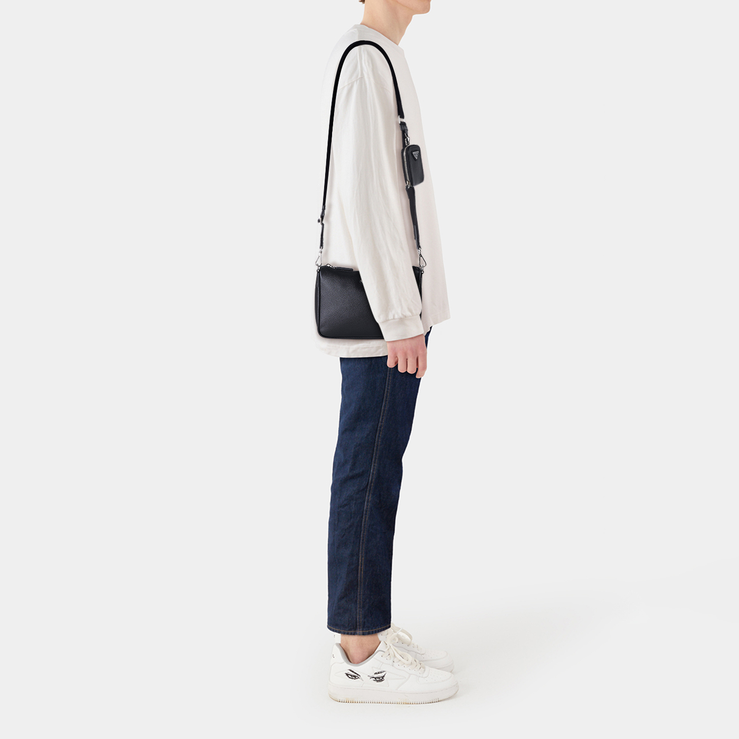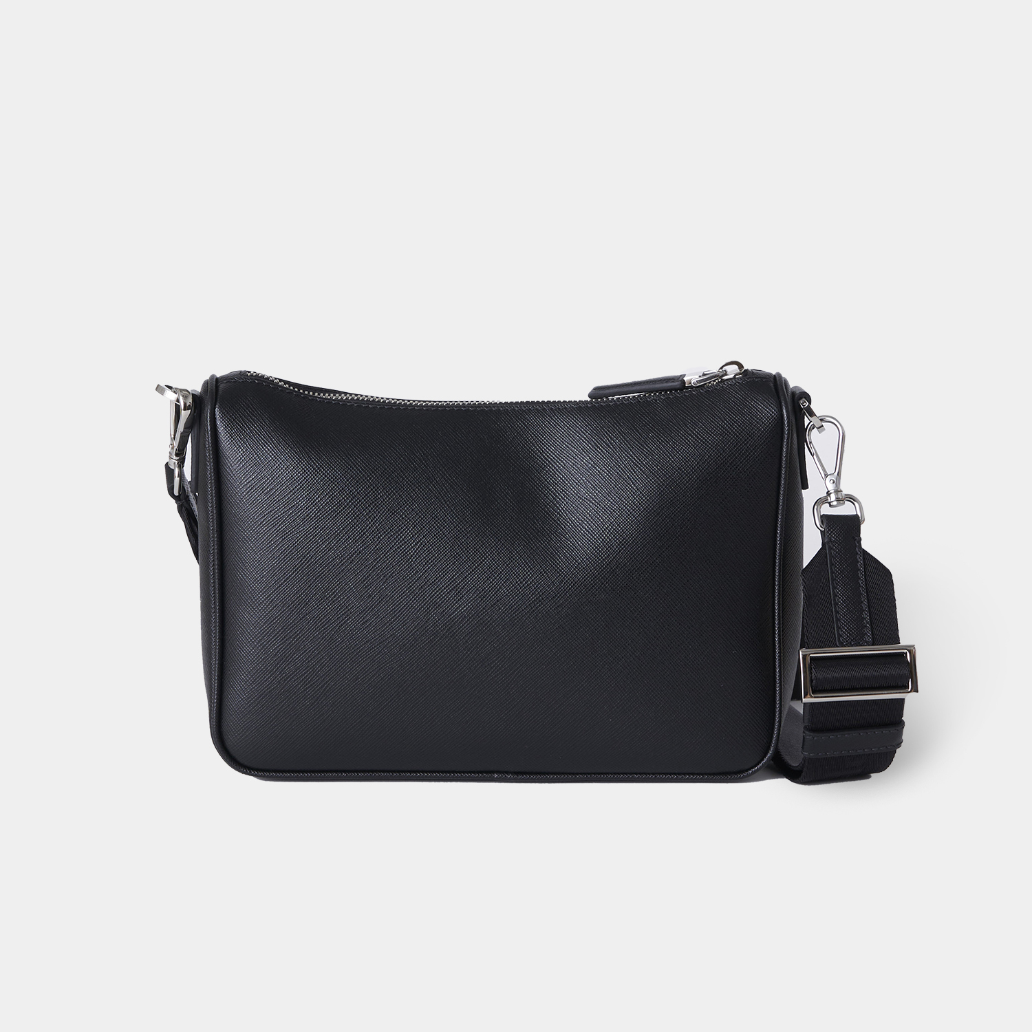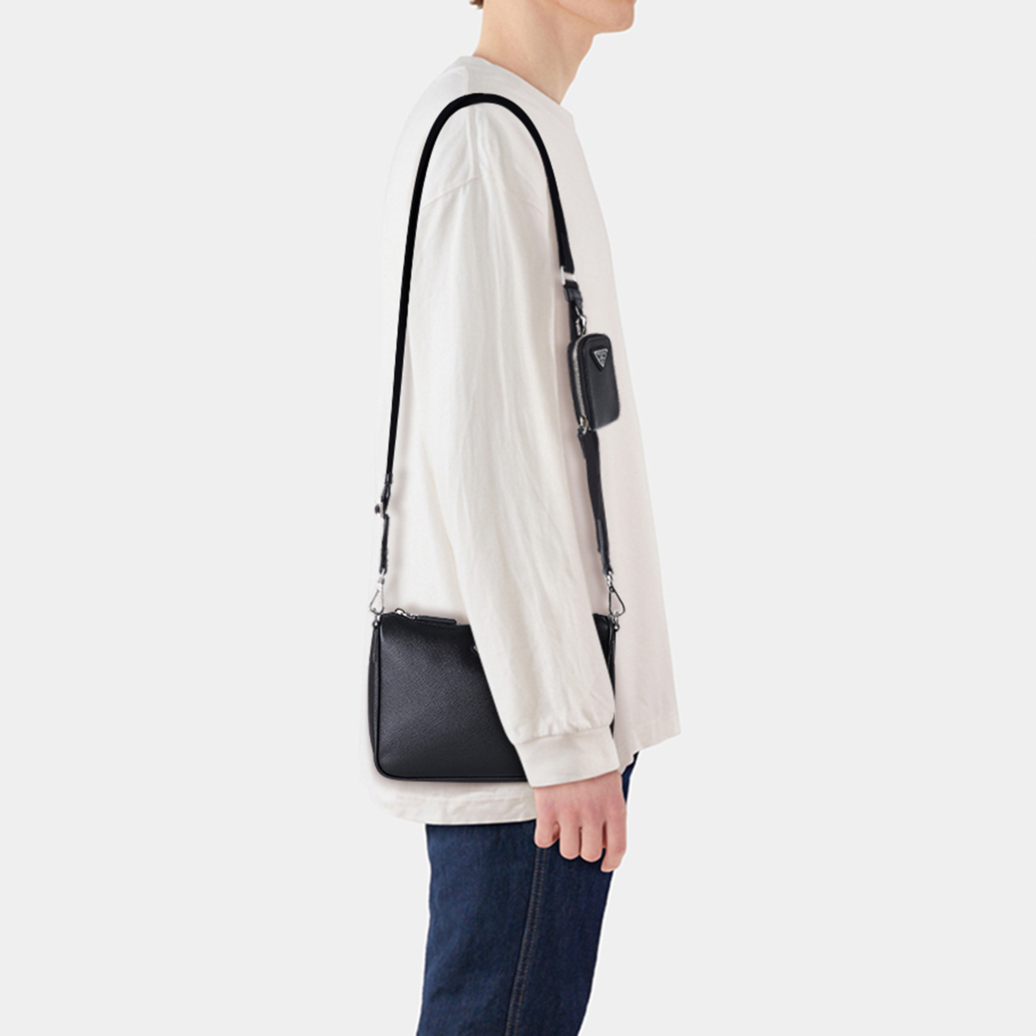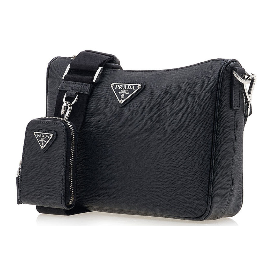 取り外し可能なポーチを備え、さまざまなシーンで活躍するデザインが魅力のショルダーバッグ。創業者のマリオ・プラダが特許を取得した、クロスハッチ加工と優れた耐傷性と多少の水滴にも強いアイコニックな「サフィアーノ」レザーを使用。コンパクトでミニマルなラインが際立つアイテム。プラダのシグネチャー、エナメルメタルのトライアングルロゴが、アイコニックでタイムレスな魅力を添えています。
