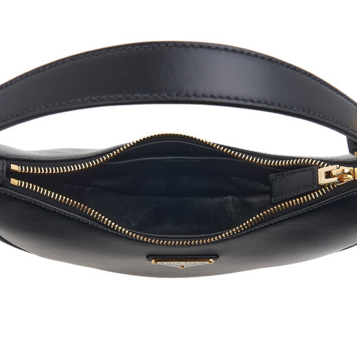 多彩に活躍するモダンなスタイルが魅力的な、洗練されたレザーバッグ。レザーの延長ストラップを備えさまざまな方法で携帯できる、曲線的なシルエットのアイテム。ナッパレザーのライニングとメタルパーツを施し、バッグのフロントにアイコニックなエナメルメタルのトライアングルロゴをあしらい、アクセントを添えました。
