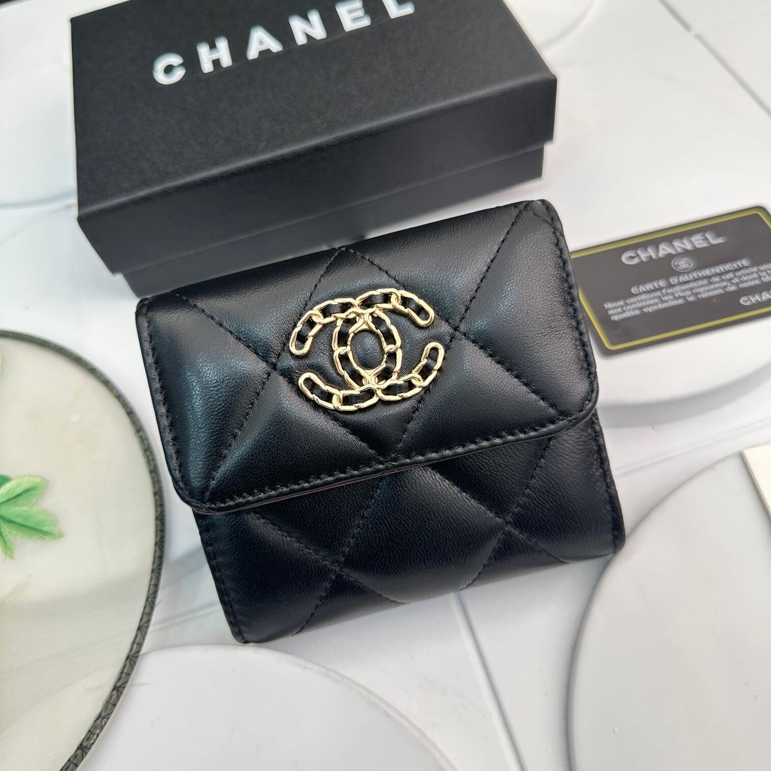 (シャネル)AP1064フラップ ウォレット財布☆ブラック