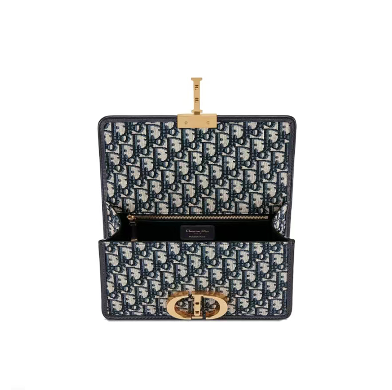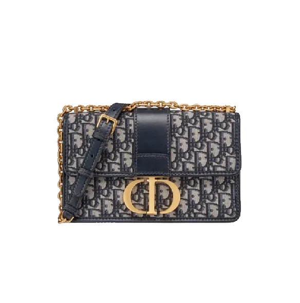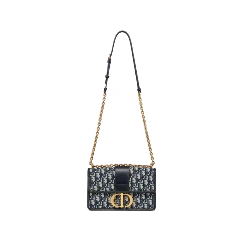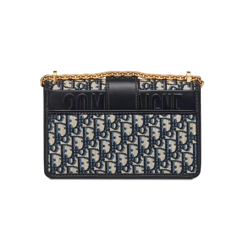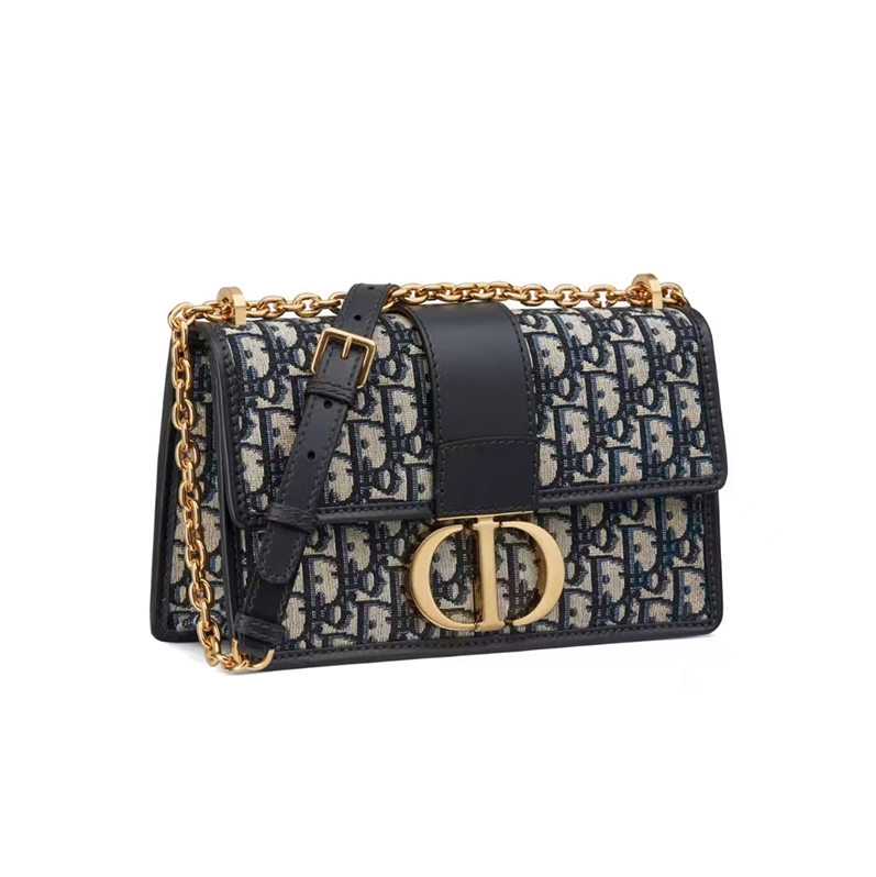 【ディオール】ブルー 30 MONTAIGNE ディオール オブリーク ジャカード キャンバス フラップ チェーンクラッチバッグ