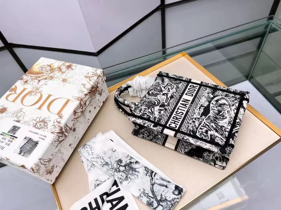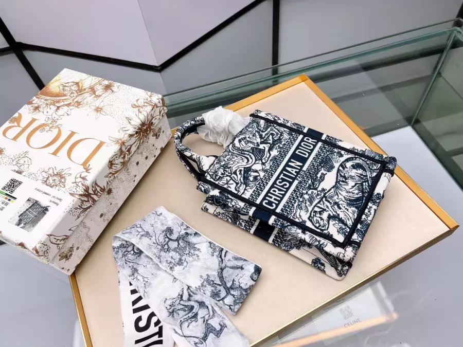 【ディオール】ミニトートバッグ Dパターン ファッションタイガーパターン