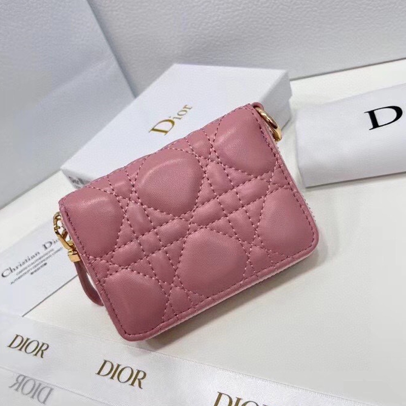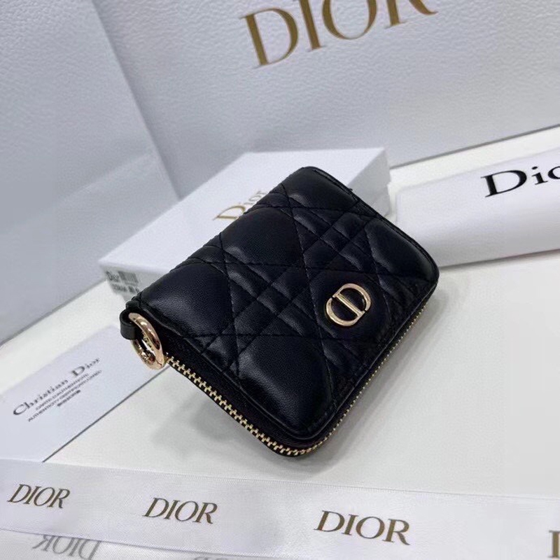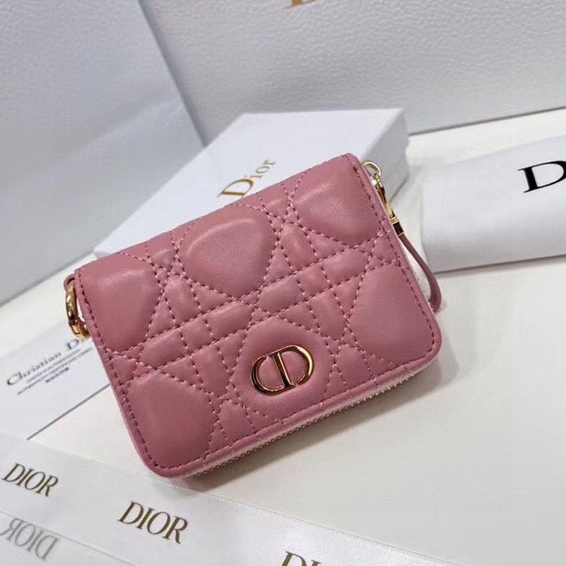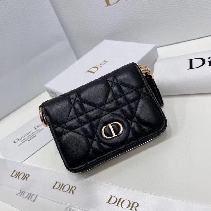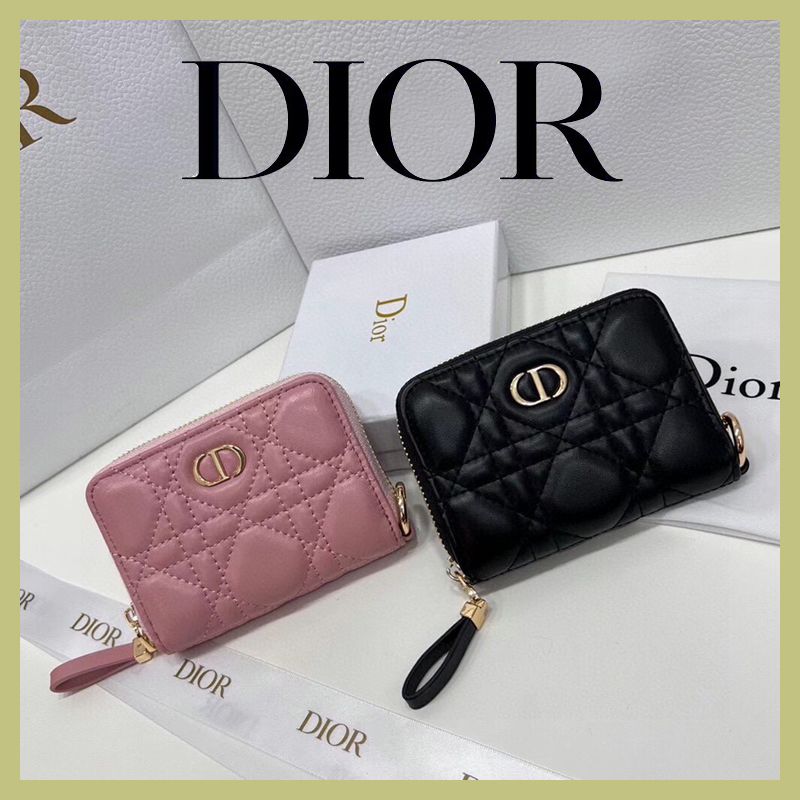 【ディオール】籐チェック柄ジッパー財布カードバッグレディース