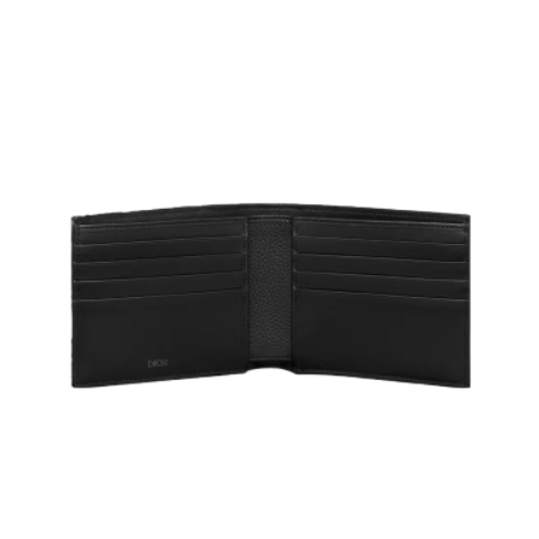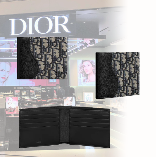 【ディオール】オールオーバー プリント ジャカード ファブリック カーフスキン ウォレット ブラック