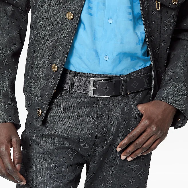LVアスファルトベルトは現在のトレンドを表現するスリムカットで、スクエアピンバックルにはLVロゴが刻印されており、ブランドスタイルに溢れています。