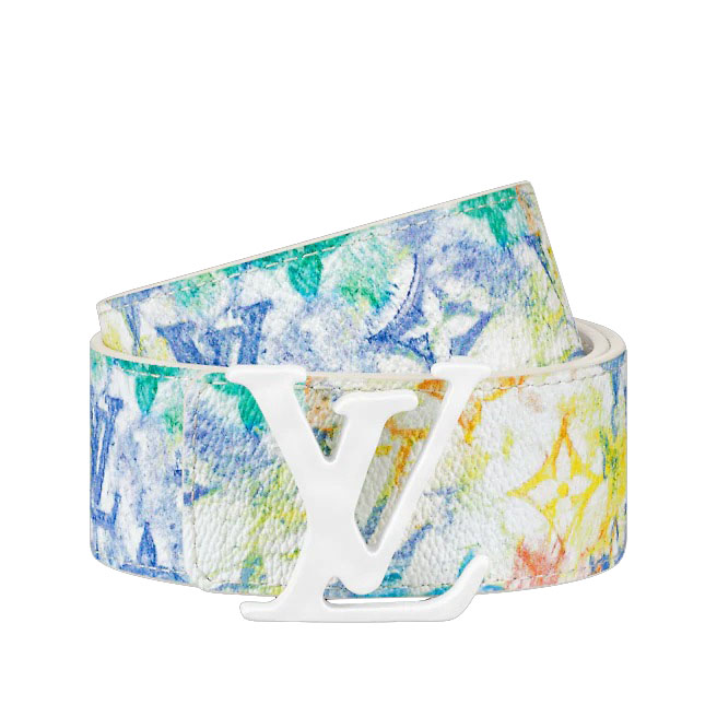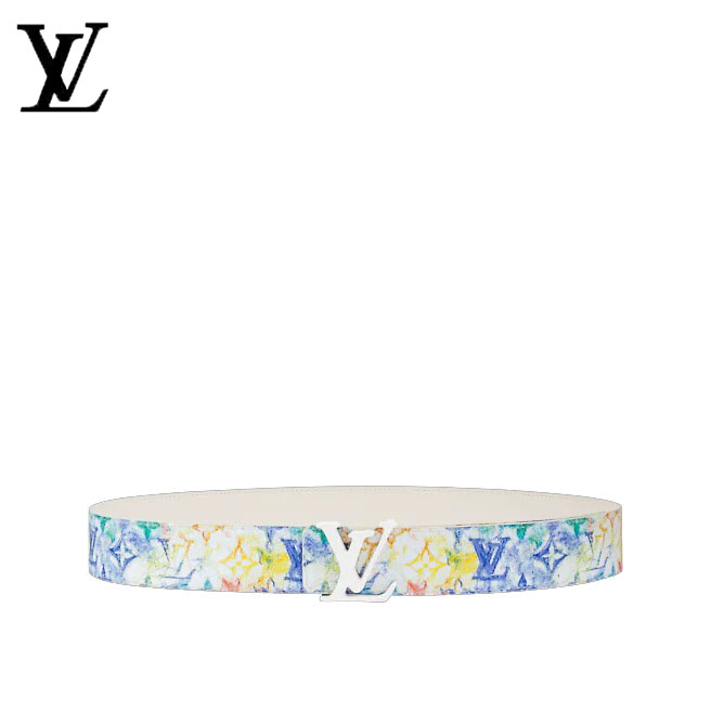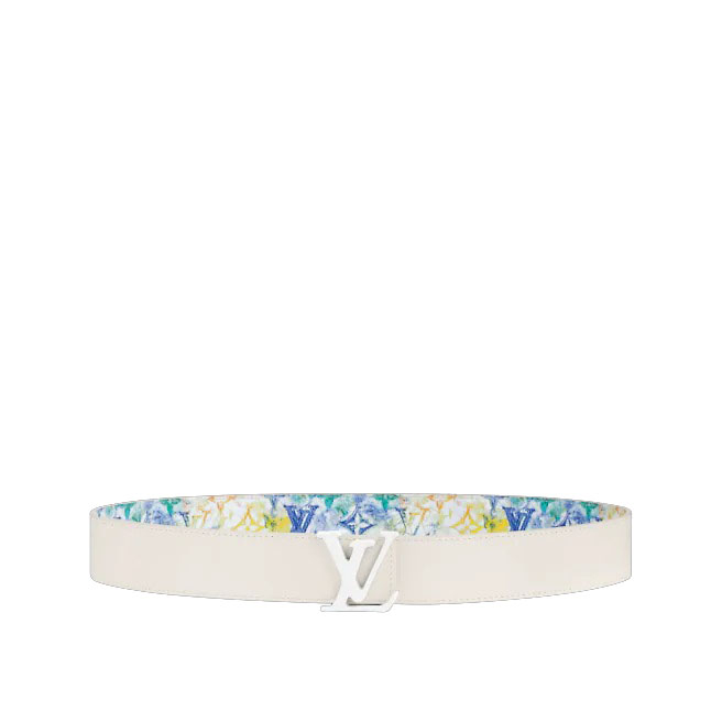 このLVシェイプの両面ベルトは、水彩画の効果でアーティストの創造的な瞬間を捉えています。モノグラムパターンが汚れた背景に表示され、裏返すとプレーンな面が現れます。マットなLVシェイプバックルがブランドスタイルをプラスします。