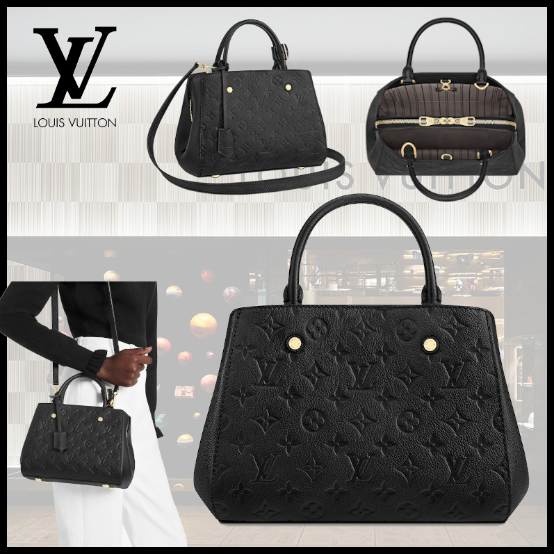 ルイ・ヴィトン M41053 モンテーニュBB モノグラムアンプラント ハンドバッグ 2way レザー ノワール 黒 ブラック