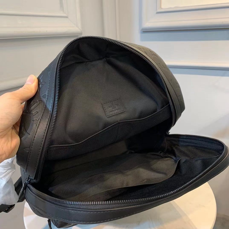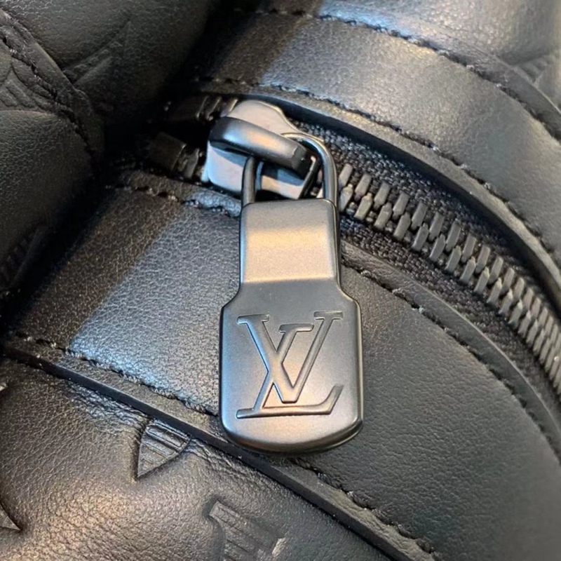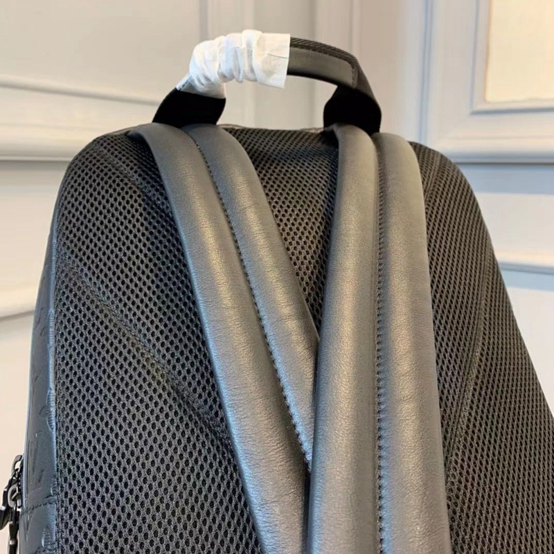 しなやかなモノグラム・シャドウ レザーを使用し、マットブラックの金具で仕上げた「スプリンター・バックパック」。モノグラム・パターンを控えめに型押ししたブラックカーフレザーがシンプルなラインを引き立てます。内側には身の回り品を整理できるフラットポケット付きで、収納力も抜群です。