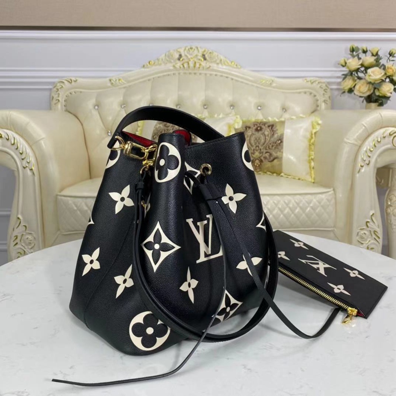 ルイ・ヴィトン M45497 ネオノエMM モノグラムアンプラント レザー ポーチ付き ショルダーバッグ バイカラー ブラック ベージュ