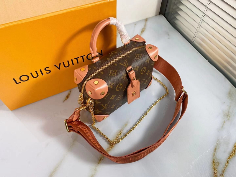 メゾンの歴史を色濃く反映した個性的なソフトハンドバッグ「プティット・マル スープル」。モノグラム・キャンバス、リベット加工を施したレザーのコーナー部分、レザー製ネームタグなどが、トランク製造業者として創業したルイ・ヴィトンの伝統を彷彿させます。ゴールドカラーのマリンテイストのチェーンを添え、取外し可能な幅広のストラップには「Louis Vuitton Malletier」の刺繍を施し、最新スタイルを実現しました。