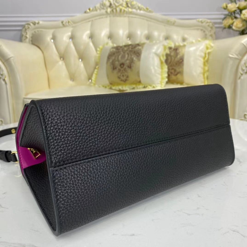 ルイ・ヴィトンの2020冬コレクションに登場した「ツイスト・ワンハンドル MM」。エレガントなトップハンドルで手持ちとしても、取外し可能なショルダーストラップでクロスボディバッグとしてもお楽しみいただけるバッグをトリヨンレザーで仕立てました。1988年に「ポシェット・トラペーズ」に初めて採用されたアイコニックなツイストロックが、スタイルを完成させます。バッグの内側に添えた鮮やかなカラーのレザーライニングも魅力です。
