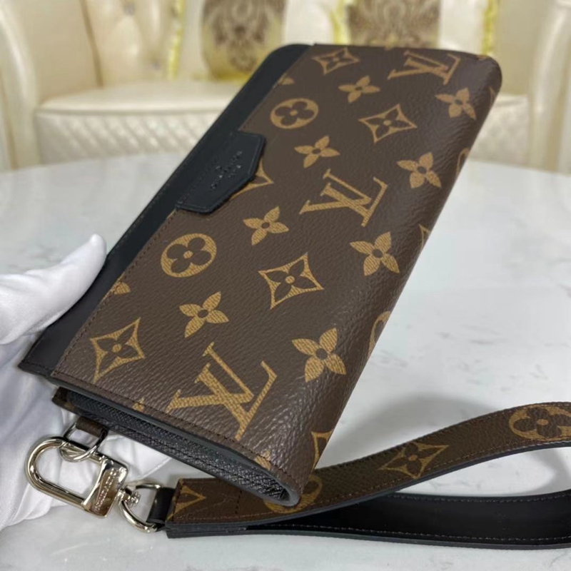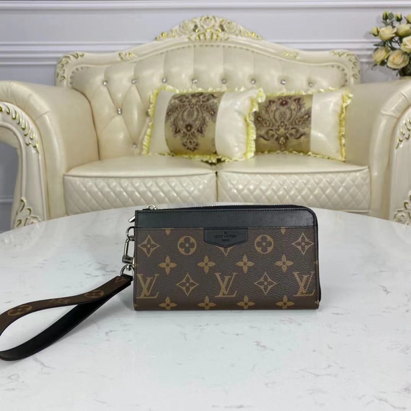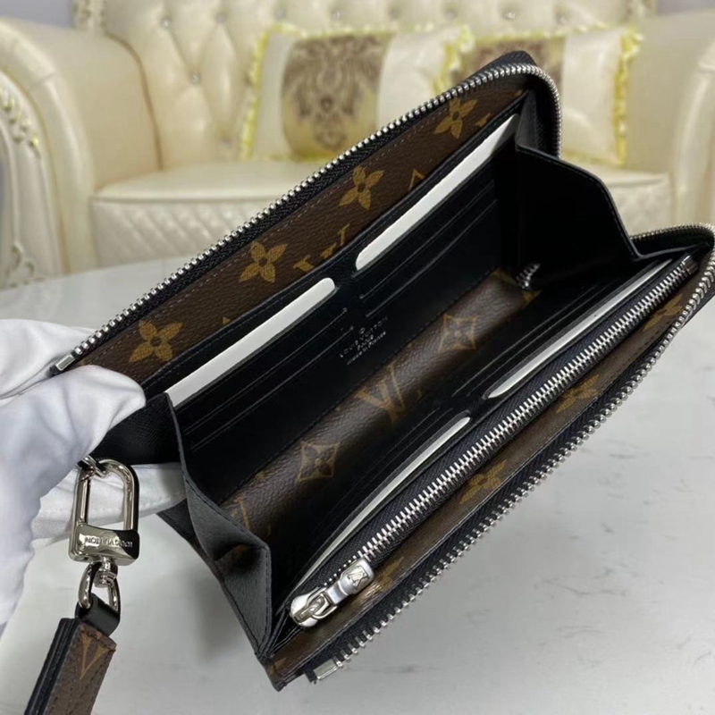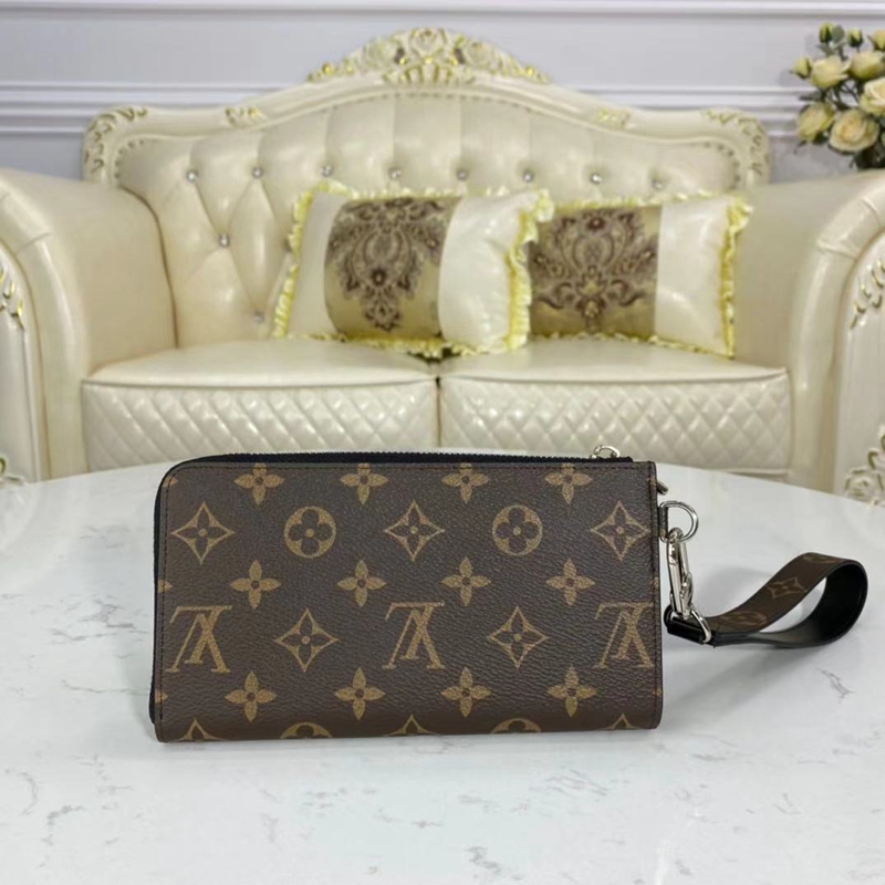 モノグラム・キャンバスにマカサーエボニーウッドをイメージしたブラック & ブラウンのレザーのトリミングを施した「ジッピー・ドラゴンヌ」。メインコンパートメントは2つに分かれており、複数の携帯電話を収納するのにも充分なサイズです。取外し可能なリストストラップ付きで、手持ちしたりバッグに入れて持ち運ぶことも可能です。