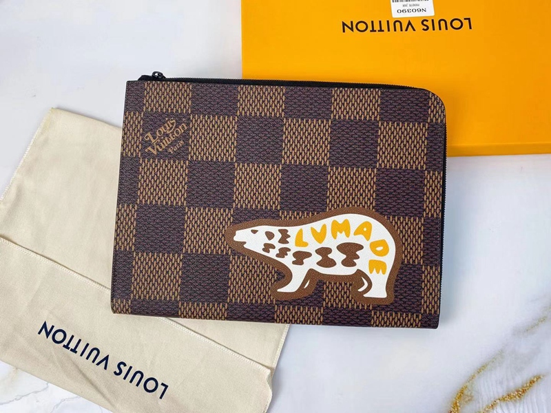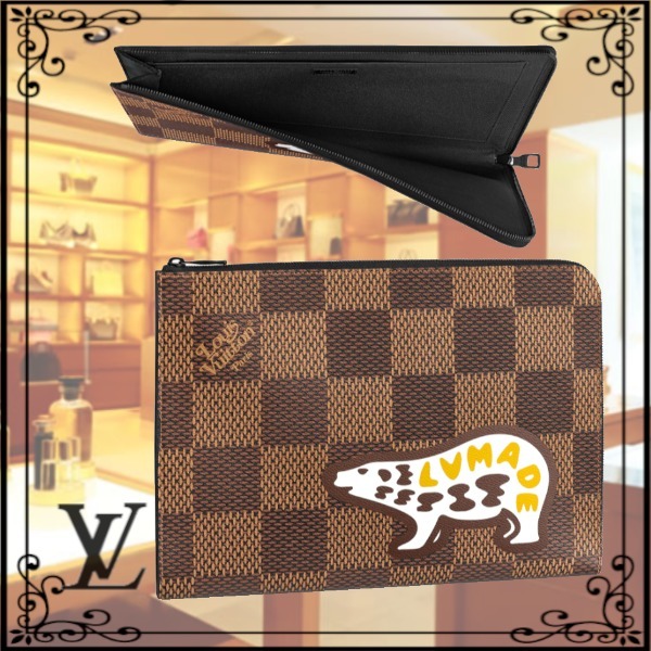 ルイ・ヴィトン N60390 ポクラッチバッグ ダミエ・エベヌジャイアント ポシェット・ジュール N60390 NIGOコラボ ダミエ ルイ ヴィトン バッグ クマ